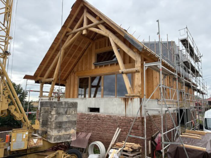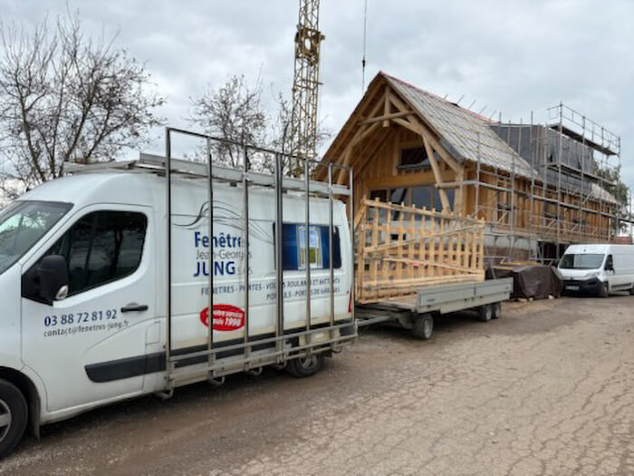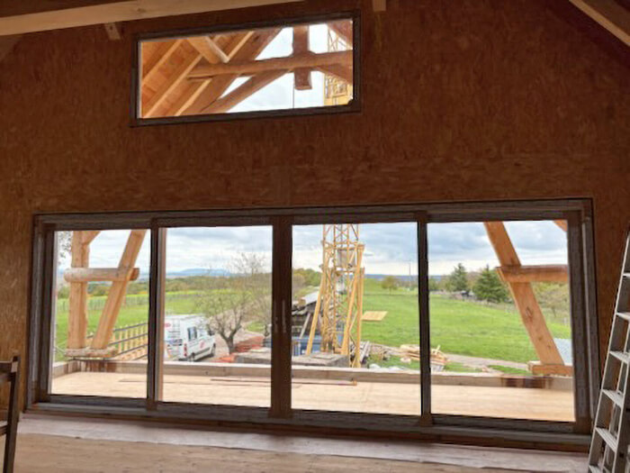 Fenêtres Jung a réalisé la pose d’une grande fenêtre et d’une baie vitrée XXL dans une maison d’exception en ossature bois et au style chalet chic. Cette installation valorise la maison en offrant une vue panoramique sur la nature environnante et en apportant beaucoup de luminosité intérieure. Les châssis, soigneusement choisis pour s’harmoniser avec le bois, renforcent l’esthétique chaleureuse du lieu. De plus, les larges portes coulissantes offrent une ouverture généreuse vers la terrasse, permettant ainsi de profiter pleinement des espaces extérieurs. Bravo à nos équipes pour ce travail remarquable dans un lieu d’exception !
