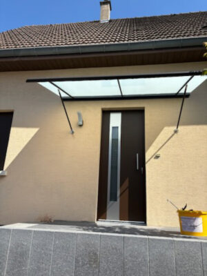 Avec ses 85 mm de profondeur, ses 6 chambres ainsi que son triple joint, ce robuste profilé offre un excellent confort thermique et acoustique au quotidien. La large surface vitrée, avec un motif effet verre dépoli, permet de bénéficier d’une belle luminosité dans l’entrée. Cette nouvelle porte d’entrée constitue une solution élégante, performante et durable pour valoriser la maison de notre client.